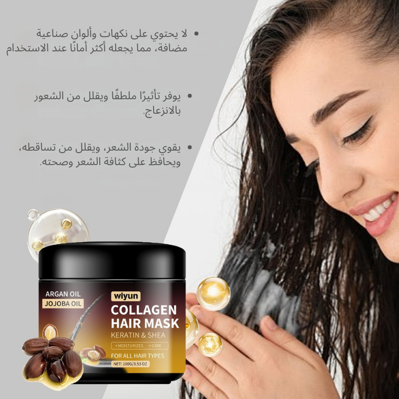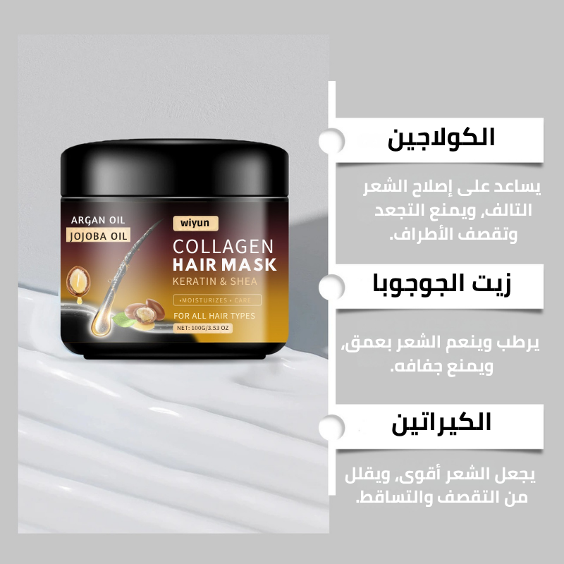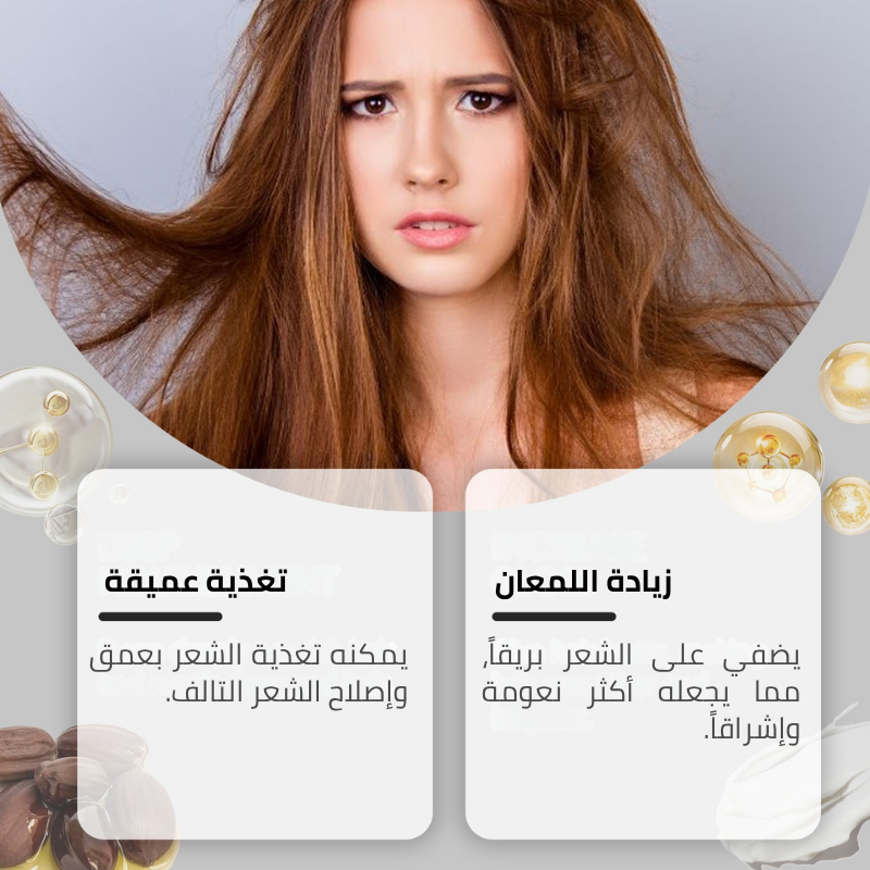 "إذا كنتي تعانين من شعر جاف أو تالف، هذا القناع هو الحل. غني بالكولاجين وزيت الأرغان، فراح يحسن من صحة شعرك بشكل ملحوظ. أنا جربته مرتين في الأسبوع وصار شعري لامع وأقل خشونة. ما في أي مواد ضارة فيه، عشان كذا حبيت أشارك تجربتي."