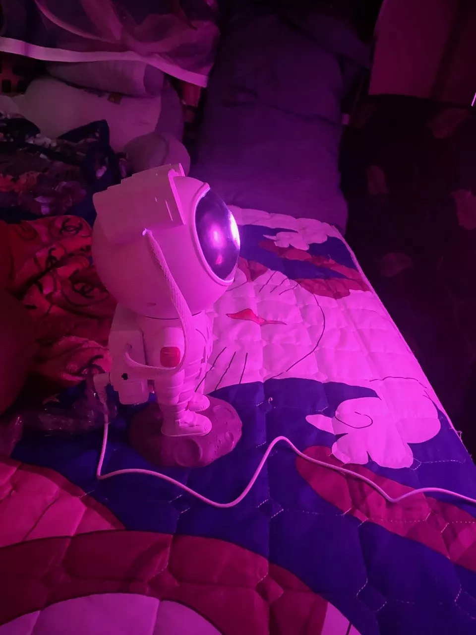 "كنت نبحث عن حاجة تخلق جو هادي وجميل في البيت، فاشتركت جهاز عرض رائد الفضاء. 💫 من أول لحظة شغلته، حست أنه حول المكان كله لمنتجع صغير. وصلني بسلام، والعبوة كانت محكمة. 💥📦"