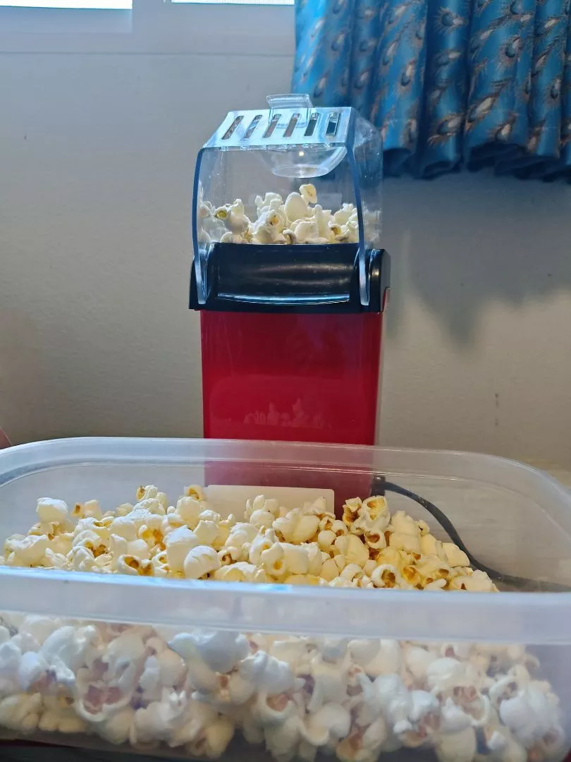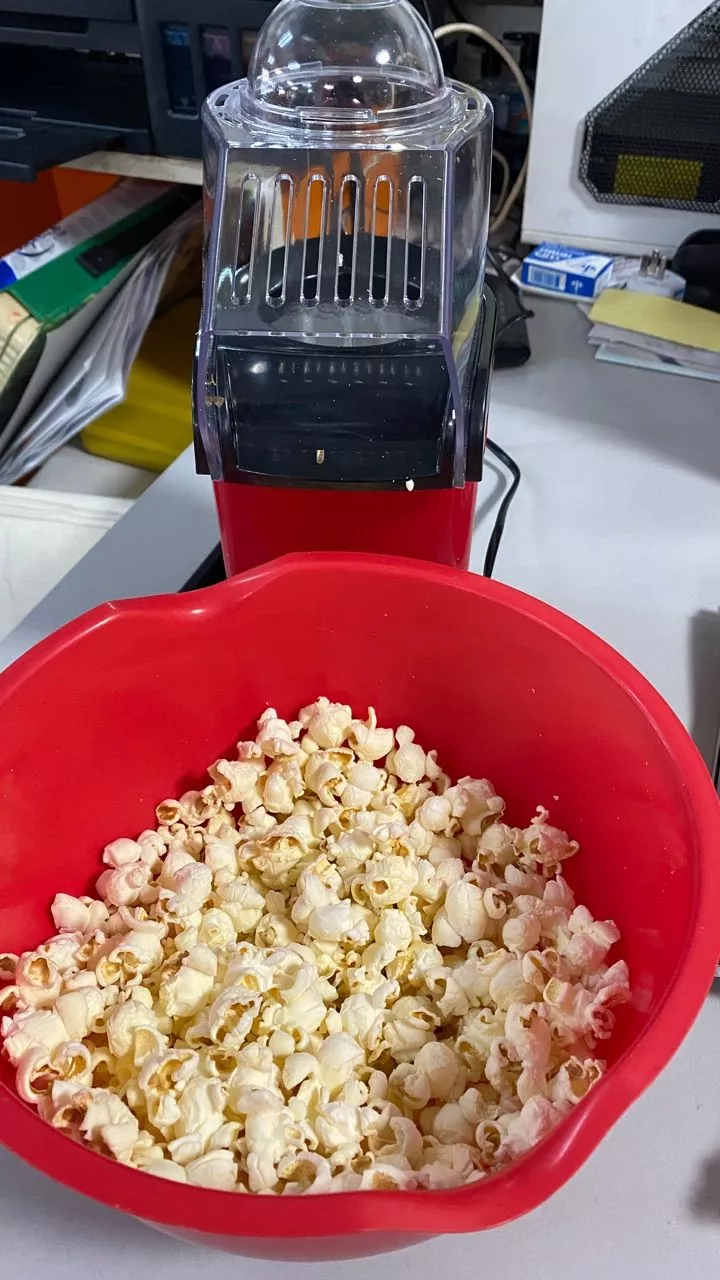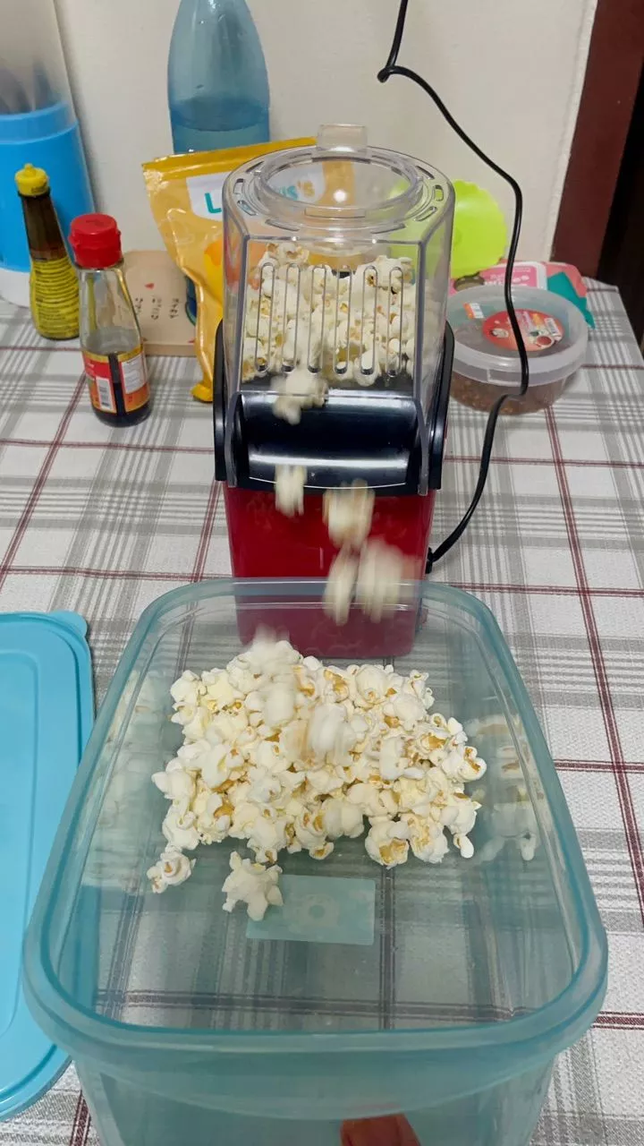"شريت الصانعة هذي بعد ما شفت تقييمات كثير عنها، ولما وصلتني كانت أفضل مما توقعت! التوصيل كان سريع جدًا، وفكرة الفشار بدون زيت عجبتني. 3 دقايق والفشار جاهز. كنت متخوف من السعر، بس طلعت صفقة حلوة."